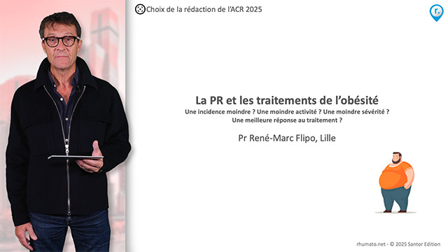 | La sarcopénie et l’obésité sont deux affections fréquentes chez les personnes âgées, souvent interconnectées, et dont la coexistence - appelée obésité sarcopénique - est associée à une altération fonctionnelle plus sévère que chacune des conditions isolées. Chez les patients atteints de polyarthrite rhumatoïde, la perte musculaire liée à la cachexie rhumatoïde et la sédentarité induite par les douleurs articulaires favorisent la survenue de la sarcopénie. |